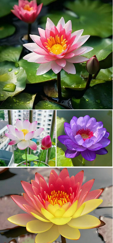 - The plant is 40-45 cm tall, belongs to the ornamental lotus type, small size, many flowers, many beautiful colors